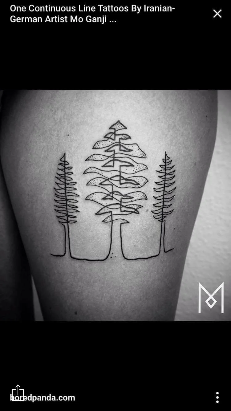 I was also inspired by the simplistic linework of Brenna's other tattoos, like the bird on her arm. It appears to be flying out from the tree!