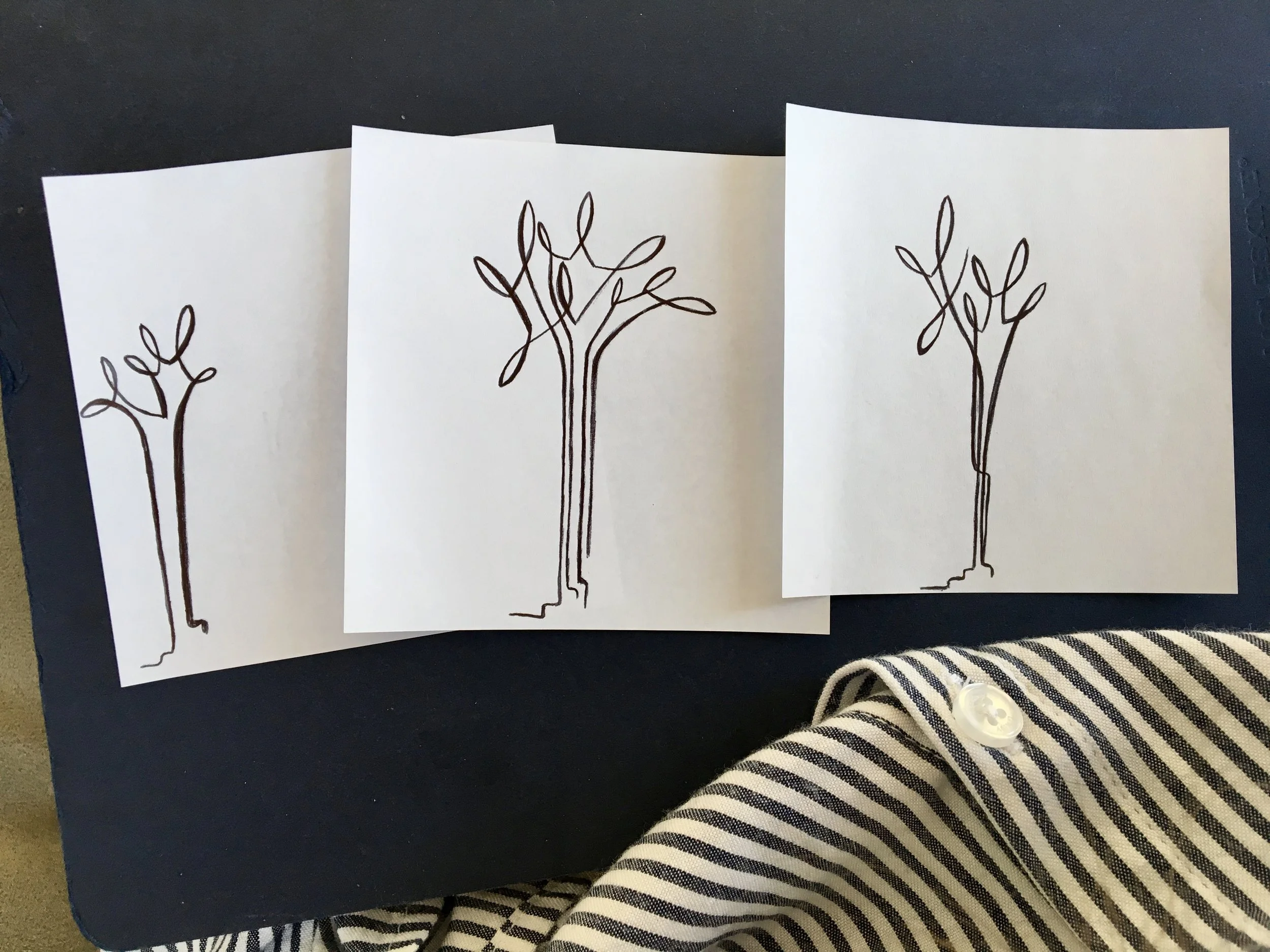 I came up with three designs, in order from left to right. I liked the composition of the flower tattoo reference, and the loose connectivity of leaves in the tree tattoo reference. Brenna decided on the last design, which is my favorite as well!