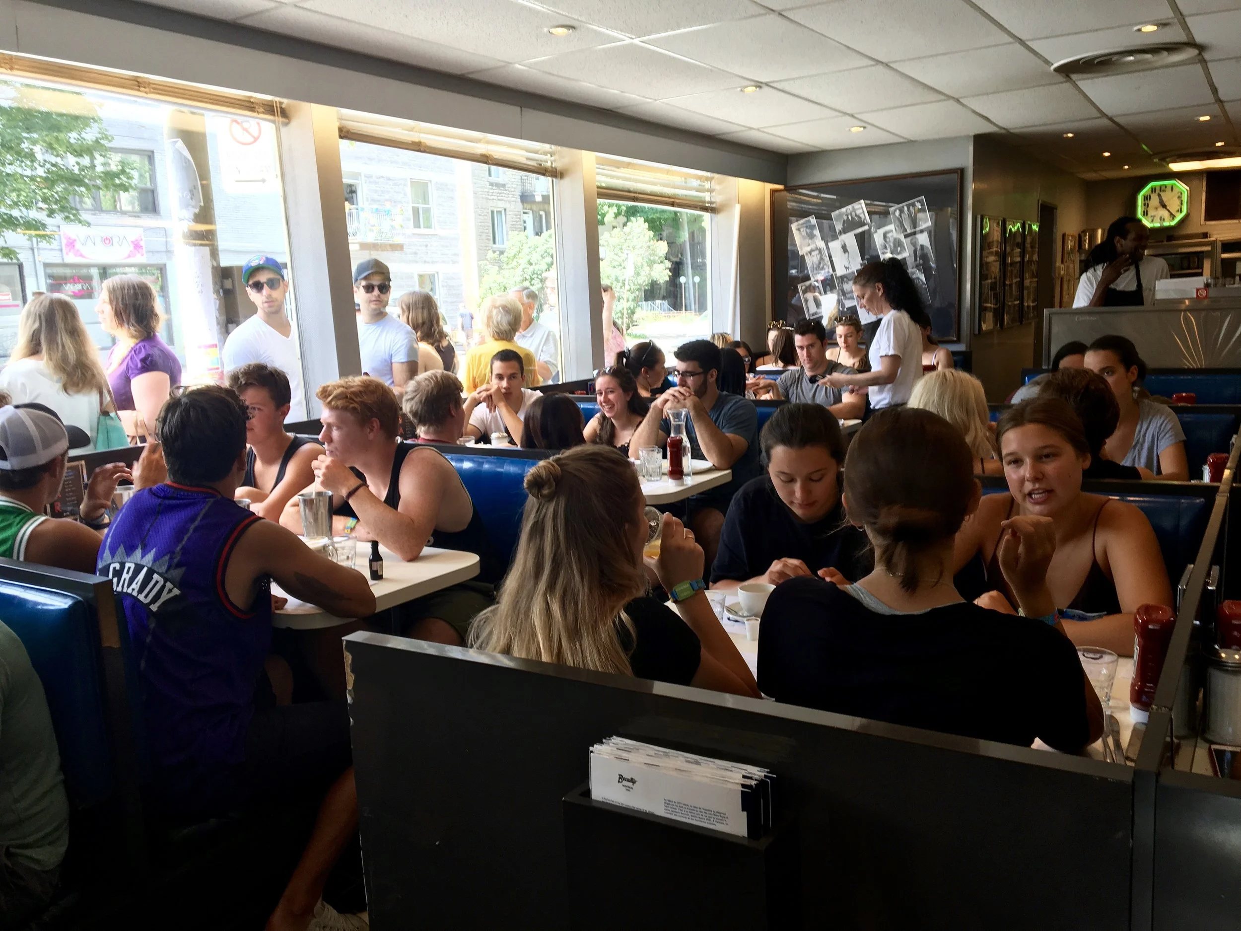 - FOOD - The first restaurant we went to in Montreal was Beauty's, an award-winning diner that has been around for years and years. The owner began working there in his 30s, and is still seating his guests at the age of 95 with a smile on his face. We went for a late brunch, and the line to get in was wrapped around the building!
