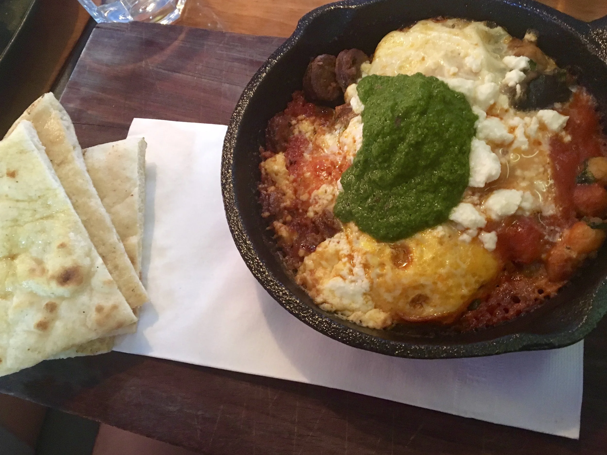The following morning, we brunched at Le Bon Vivant, a very trendy, delicious, and reasonably priced restaurant. I ordered the Shakshuka as recommended to me by Kim, and boy did I love it. Fried eggs in tomato sauce with onion, carrot, sausage, feta, pesto, and more, served in a skillet with pita on the side... yes please. Brenna's eggs benny on pulled pork also was a winner.